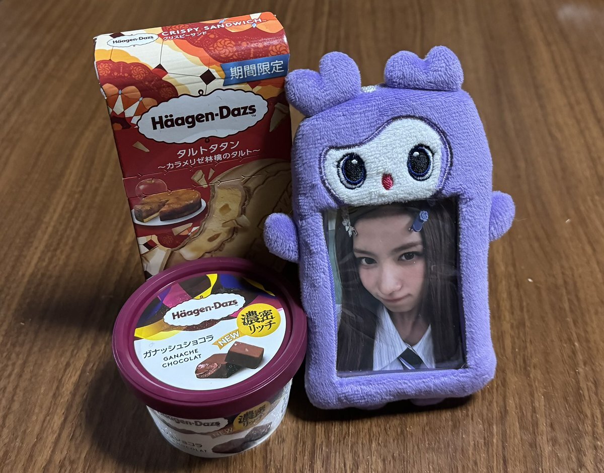 さーたん、ちゃんと発売日に買って来たよ〜‼︎💜 これ抹茶ベリー並みに好きかも、美味しい‼︎ また買います🐹 ※グッズは付属しておりません #SANA #TWICE #ガナッシュショコラ #秘めショコラ x.com/haagen_dazs_jp…