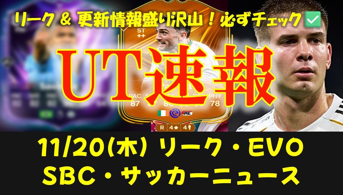 【FC26 UT速報】11/20 (木) 更新情報:リーク情報/新エボ "プレイスタイルの三冠"候補/TOTW10相場考察 youtu.be/EVVNTs2egho?si… @YouTubeより #FC26 #EAFC26 #leak #sbc #totw10 #fcprolive 本日のUT速報も長編です⚽ 是非最後までチェック頂けると嬉しいです✅ pic.x.com/HCrFVwBsfT