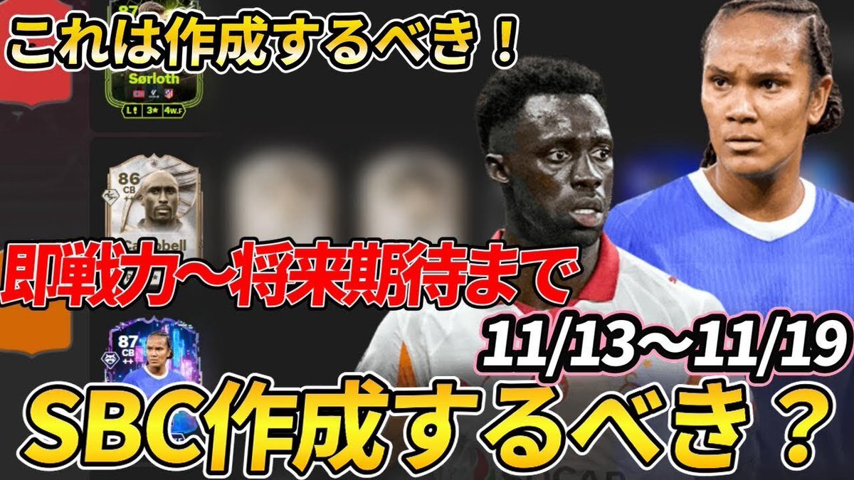 SBC作成するべき【1119】?ティアリスト紹介!あの破格金額、メタ級とエボ期待選手は作成必須!【FC26】 #EAFC26 #FC26 #SBC youtu.be/mPvcrHlr9LI pic.x.com/Z62Ez81Pem