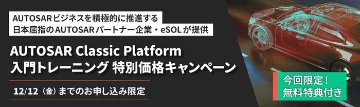 / 【12/12(金)まで|締切が迫っています】 AUTOSAR CPオンライン講座が“期間限定の特別価格”で受講可能! \ 日本屈指のAUTOSARパートナーeSOLが提供するAUTOSAR CP入門トレーニングを、最大半額で受講頂けます!人気ウェビナー5点の無料視聴特典付き! 詳細⇒ hubs.li/Q03W58fm0 #SDV pic.x.com/vx5RjRUahY