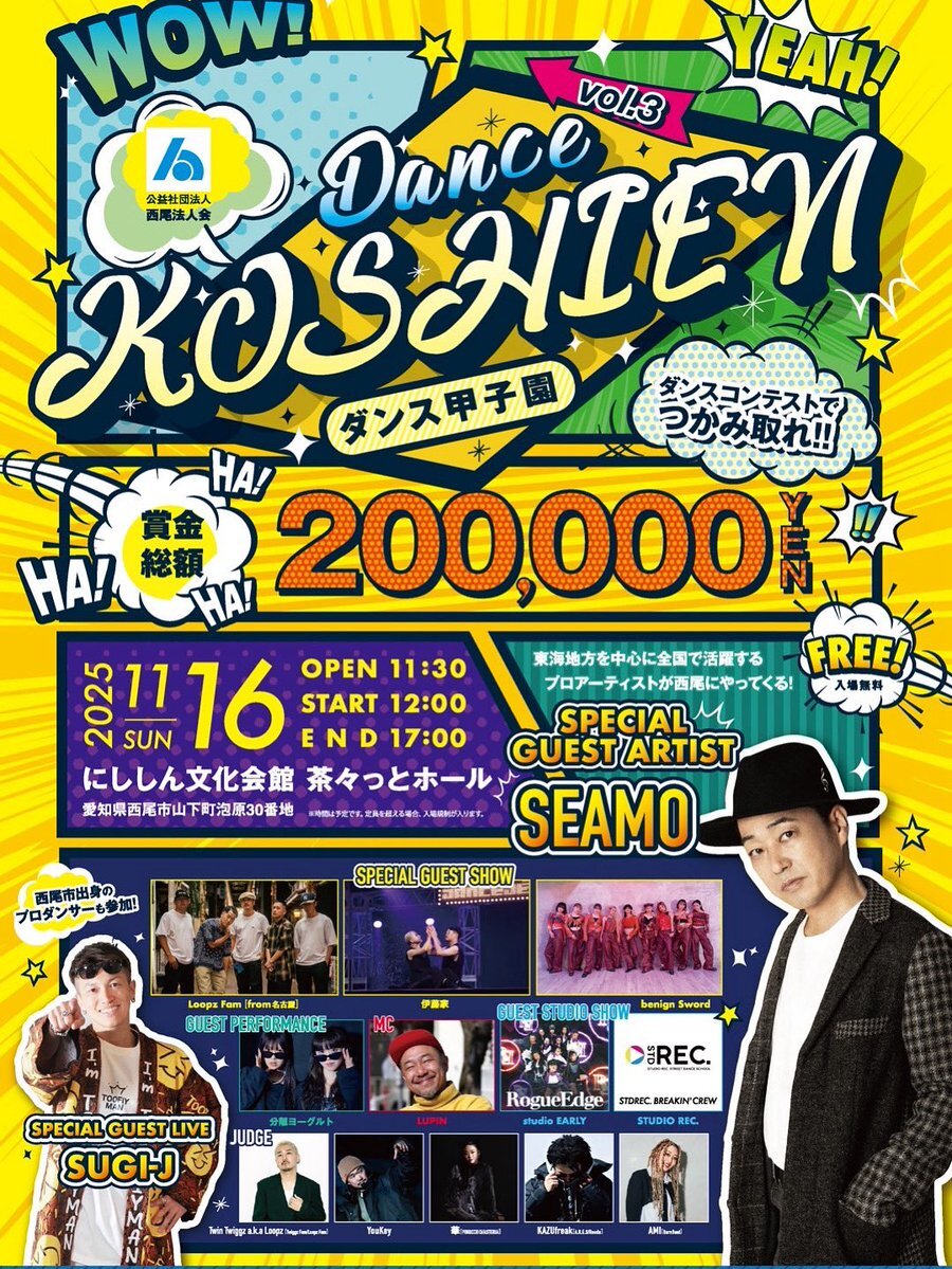 明日はこちら! 西尾市にて1番大きなダンスイベントあります! みなさんお越し下さい🌈🌈🌈 #西尾市 #SEAMO #20th pic.x.com/dDk1zV1lra
