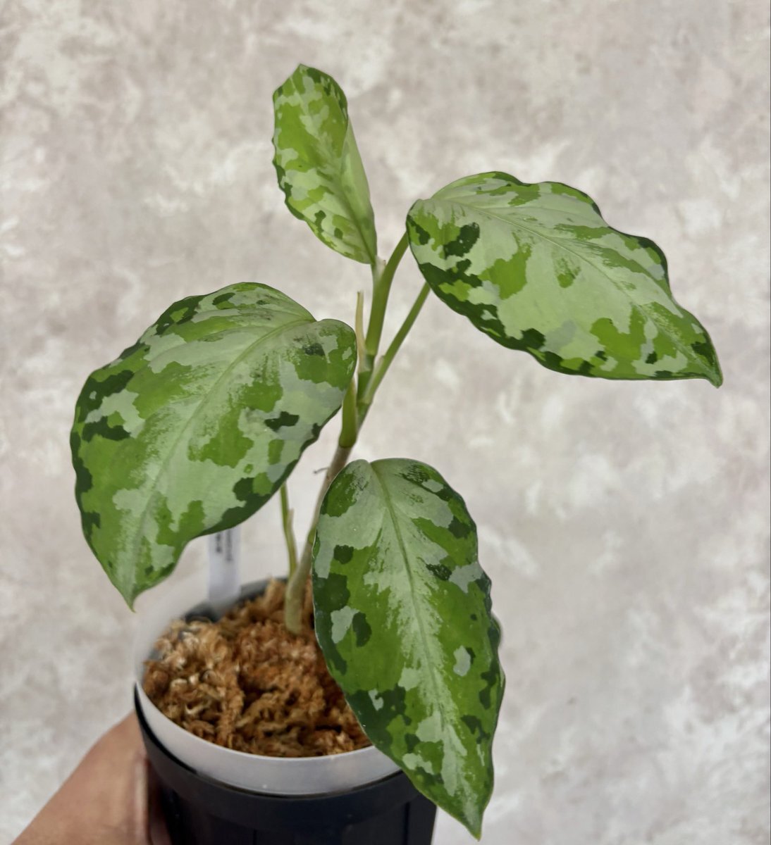 Aglaonema pictum 【LA2322-14/18】 "花天狂骨"×"雷切" 成長記録 芋から3箇所芽が出てきた影響で下葉が黄変し、4枚落ちてしまいました😭 株のバランスが悪くなってしまった。 仕方なく株の仕立て直しの為、茎に苔を巻いた。 発根したら丈詰めをする予定🌱 #LA便 #アグラオネマ #実生 #SLS pic.x.com/PY9LPuxiRL x.com/kaneta_y/statu…