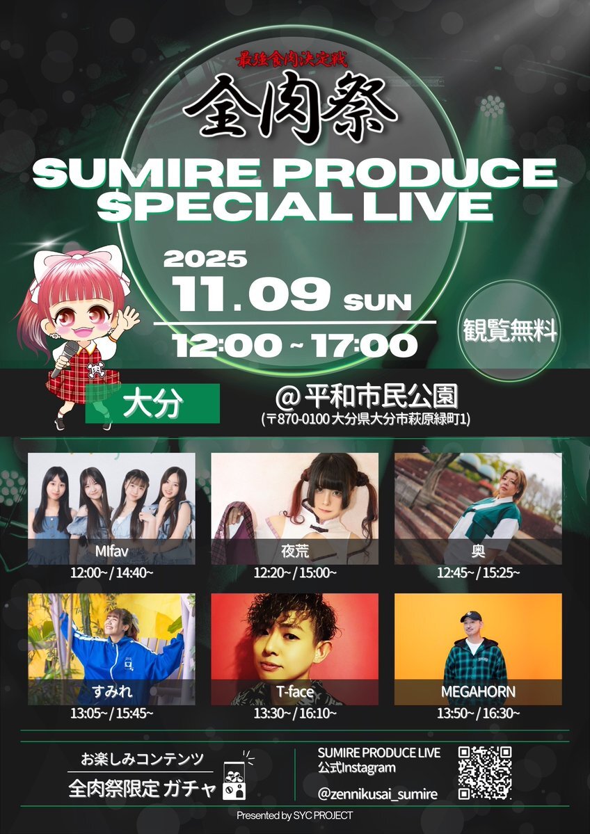 【⚠️LIVE情報⚠️】 《🔶明日です🔶》 2025.11.9(日) 大分県大分市 『 #大分全肉祭 - #SPECIALLIVE - 』 に出演します! ⭕️13時30分.16時10分出演⭕️ #観覧無料 雨具と防寒具を ご用意いただいて ぜひご来場下さい! 皆様お待ちしてます🙌✨ #大分全肉祭 #大分平和市民公園 #全肉祭 #大分 #雨天決行 pic.x.com/Dmr2fgjLdV