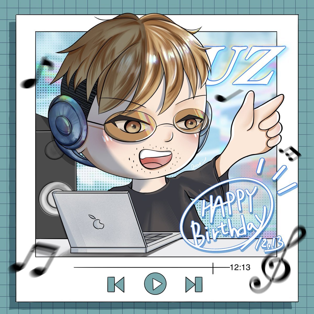 いつも音楽のことをシェアしてくれるUZさんの投稿を見るたびに、 「今きっとこうやって曲を作ってるんだろうな…」って、UZさんの音作りしている姿が頭に浮かんできて🎶🎸 そのイメージをそのまま絵にしてみたら、このバースデーイラストができました😆 HBD🎂🥳 #UZ #SPYAIR pic.x.com/ijm7pSF9dk