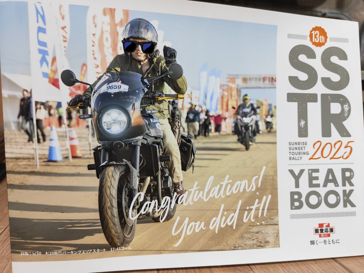 SSTR2025のイヤーブックが本日届きました! 表紙はプロカメラマンがゴールで撮ってくれたオーダーカバーです。 次回はもっとはっちゃけたポーズでゴールしたいと思います! #SSTR #SSTR2025 #z900rs pic.x.com/nGUHste2yL