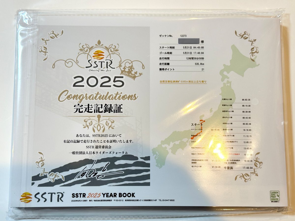 SSTRのイヤーブックが届いたヽ(´▽`)ノ 初めて夫婦でSSTR参加できたし、自分の写真や完走記録証入りで思い出に残るよね。頼んで良かった♪ 仕事終わったらゆっくり読もうっと! #SSTR #SSTR2025 pic.x.com/dt8ef7dUOi