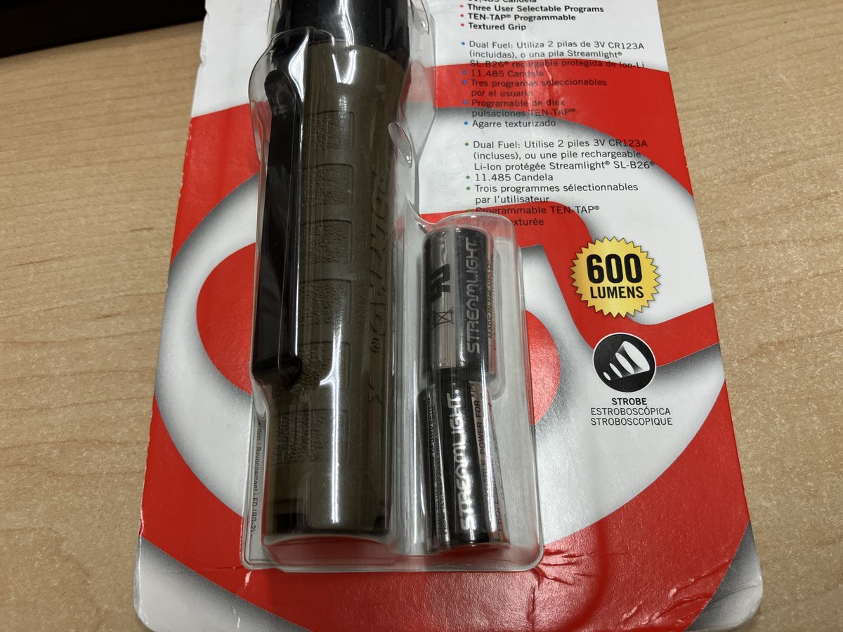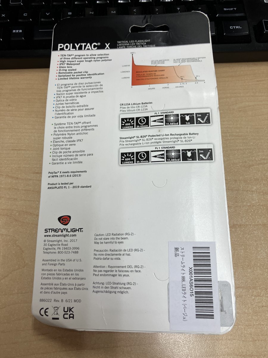 細かいことは気にせずStreamlightのPOLYTAC Xを開封しました。たぶん仕様通り600ルクス出てるぽい。簡単にテールスイッチを交換できないけど、滑り止め付きの樹脂製で握りやすい。電池はCR123Aと18650のハイブリッド仕様で財布に優しい #Streamlight #POLYTACX #ストリームライト pic.x.com/vJpSKUk6W6