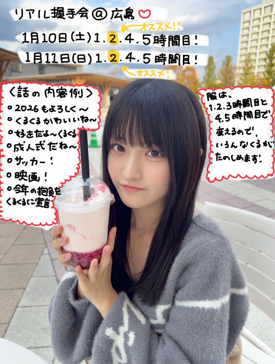 #STU48 #傷つくことが青春だ まだまだ一緒にお話ししましょ! オンラインお話し会 📲2025年12月14日(日) オススメ 4時間目🩵 握手会/2S・サイン会 📍広島市中小企業会館 🤝2026年1月10日(土) 🤝2026年1月11日(日) オススメ 1時間目💛 stu48.chara-ani.com x.com/stu48_official…