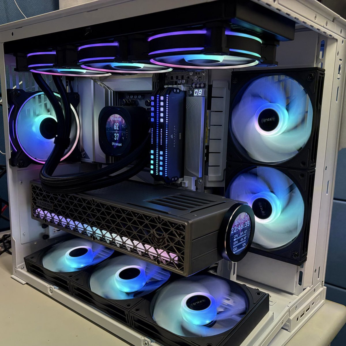 PC自作7号機 ついにバックコネクタマザーへ Case: Lian Li O11D mini V2 MB: Gigabyte B850 Aorus Stealth Ice AIO: Corsair Nautilus 360 RAM: Dominator titanium GPU: 9070XT nitro+ Radiator, Rear:Cooler Master Halo2 Side,Bottom:Antec Connect reverse #LianLi #Gigabyte #Corsair #Sapphire pic.x.com/m2qqc5D5Xh