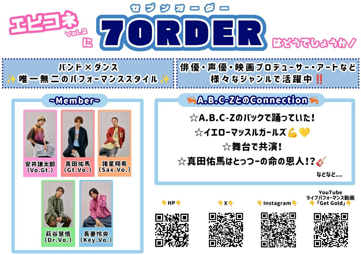 【7ORDER】に出演してほしいです‼️ A.B.C-Zとたくさんの"connection"のある7ORDERとの久しぶりの夢の共演は、ぜひエビコネで実現してほしい‼️ よろしくお願いします✨️ #エビコネ #SevenOrder #ABCZ pic.x.com/oFJ3RJq0vk