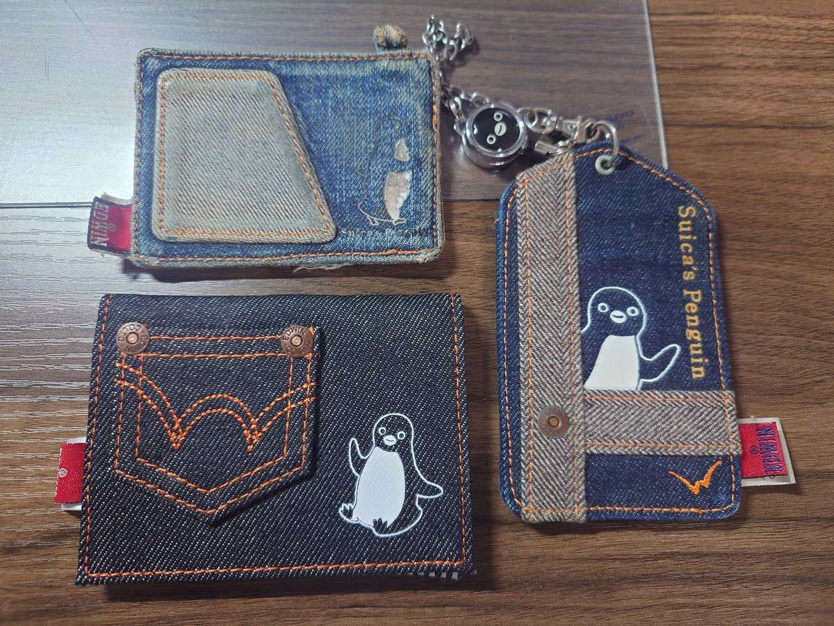 EDWIN × Suicaのペンギンコラボめっちゃ好きなんだけど、左上のSuica券面デザインのパスケース復刻してくれないかなあ🙏 お気に入りすぎて約10年毎日使っててボロボロになってしまった #Suicaのペンギン pic.x.com/a8hf77iQd5