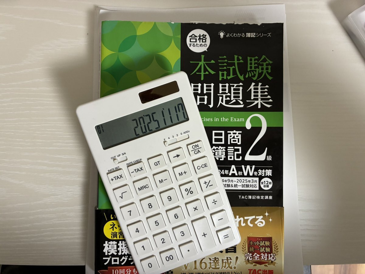 こんばんは😀ちょっとでも、ちょっとだけでもいいから簿記に触れておきました😤このちょっとが結果を分けると思っています✨ #簿記2級 #TAC #本試験問題集 pic.x.com/M2K0vx3xnF