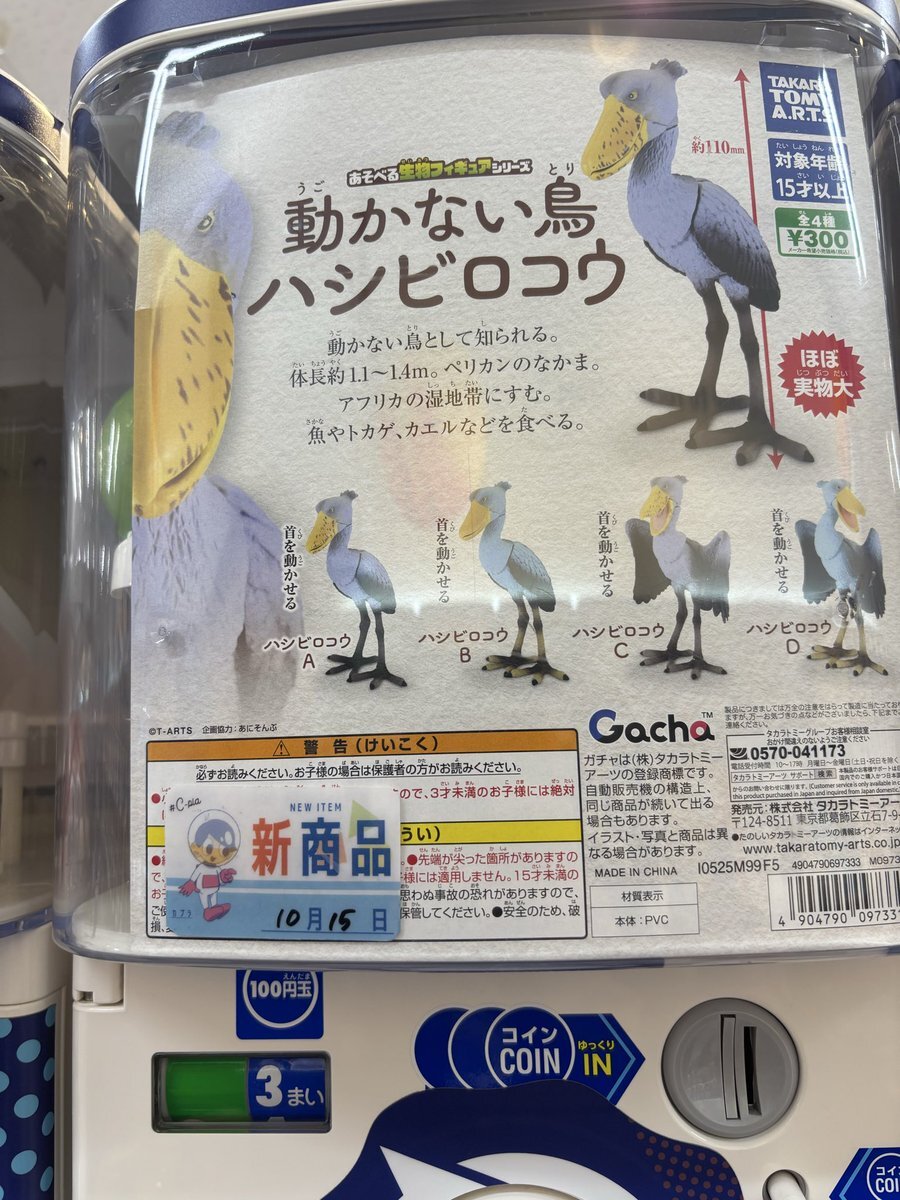 やったー*。٩(* ॑ᗜ ॑* )و*。 《動かない鳥ハシビロコウ》ガチャ 大きくて本格的👀✨ #TAKARATOMY #あそべる生物フィギュアシリーズ #ハシビロコウ pic.x.com/wcuYr1qBc3