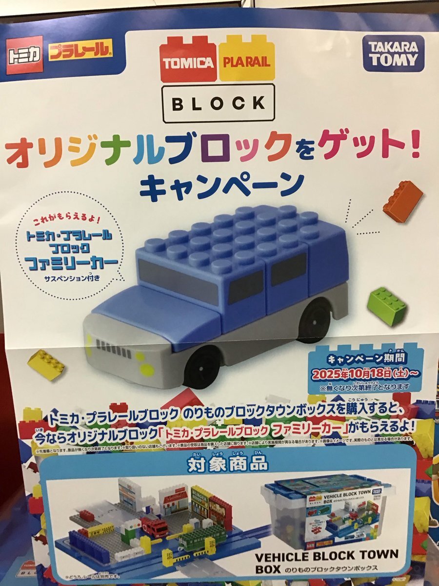『オリジナルブロックをゲット!キャンペーン』 2025年10月18日(土)からスタート❗️ #TAKARATOMY #トミカ・プラレール #のりものブロックタウンボックス #おもちゃ人形のひだや #トレカ #おもちゃ #プラモ #花火 #瑞浪 #土岐 #恵那 #多治見 #ひだや人形店 #節句人形 #鯉のぼり pic.x.com/X2r2BY5LiG