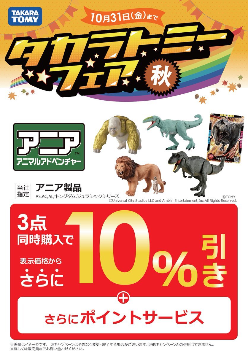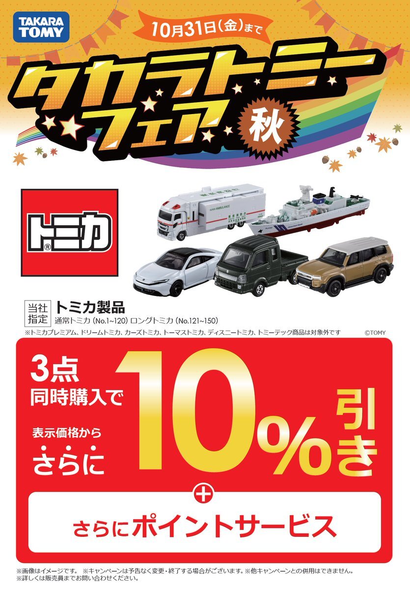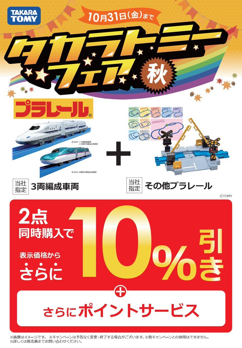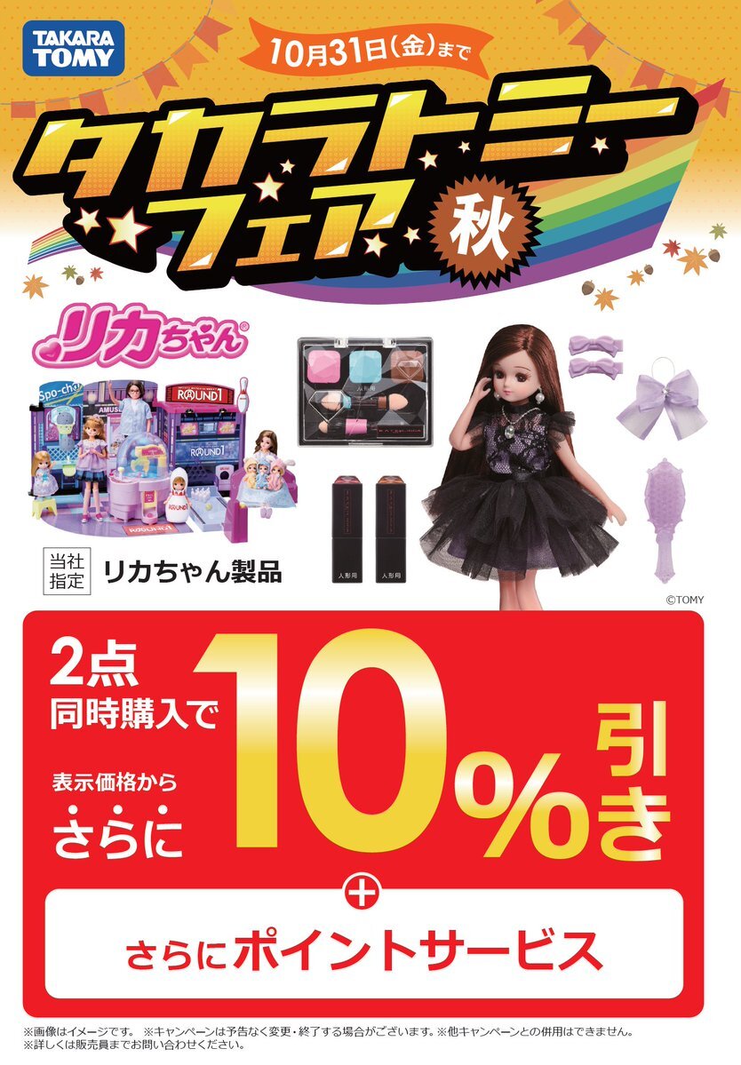 / 10/31(金)まで🎵 \ #タカラトミーフェア 秋 大好評開催中(U 'ᴗ' U)✨ 当社指定 #リカちゃん #プラレール #トミカ #アニア 製品が今だけお買得👀‼ 6階 #おもちゃ コーナーでお待ちしております🙌 #タカラトミー #TAKARATOMY pic.x.com/mZTwt9wKLD