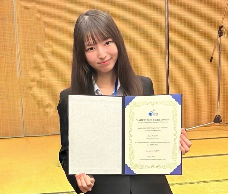 【生命理工学専攻の中田さんが「YABEC 2025」にて受賞】 11月に開催された The 30th Symposium of Young Asian Biological Engineers’ CommunityでYABEC 2025 Poster Awardを受賞しました。 dendai.ac.jp/dendai-people/… #東京電機大学 #電大 #TDU #合成生物学研究室 #理工学部 pic.x.com/wp2tRA87JL