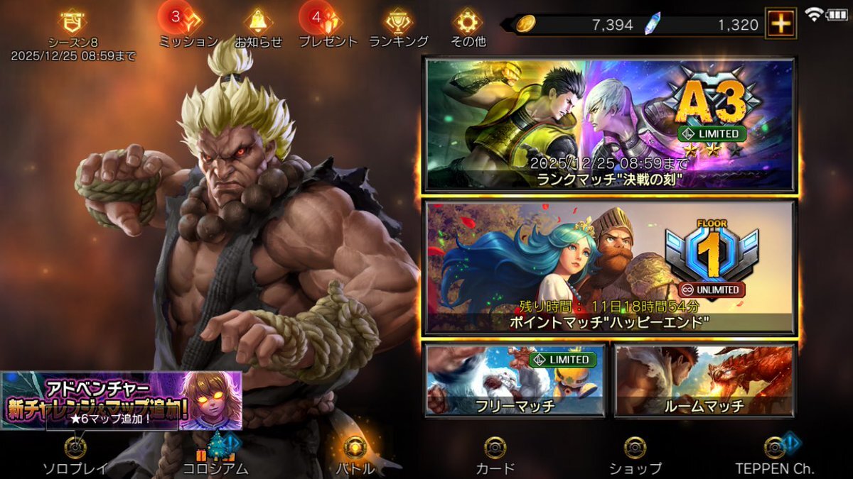 #TEPPEN 何とか戻ってきた けど、明日からお仕事期間に戻るので試行回数が減るので次に落ちたら定位置固定になりそう 運ゲーだけどね 春麗が底に沈んでいないことと手札がアクションで埋まらない事を短冊に書いて吊るすしかない pic.x.com/AtGuhJKBdc