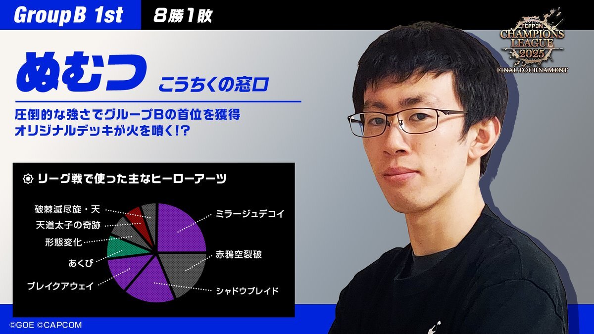 【TEPPEN CHAMPIONS LEAGUE ファイナルトーナメント】出場選手紹介 🔥グループB1位🔥 ぬむつ @numutsu_TEPPEN 圧倒的な強さでグループBの首位を獲得 オリジナルデッキが火を噴く!? 試合の模様は11月15日(土)にLIVE配信🎥 #TEPPEN #TCL2025 pic.x.com/s7HpSSUJIQ