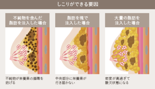脂肪注入豊胸で最も多いトラブル それは「しこり」です⚠️ 放置すると石灰化や変形につながります。 しこりができる原因とそれを回避する具体的策をまとめました✍️ 📌しこりができる原因 ①脂肪の質