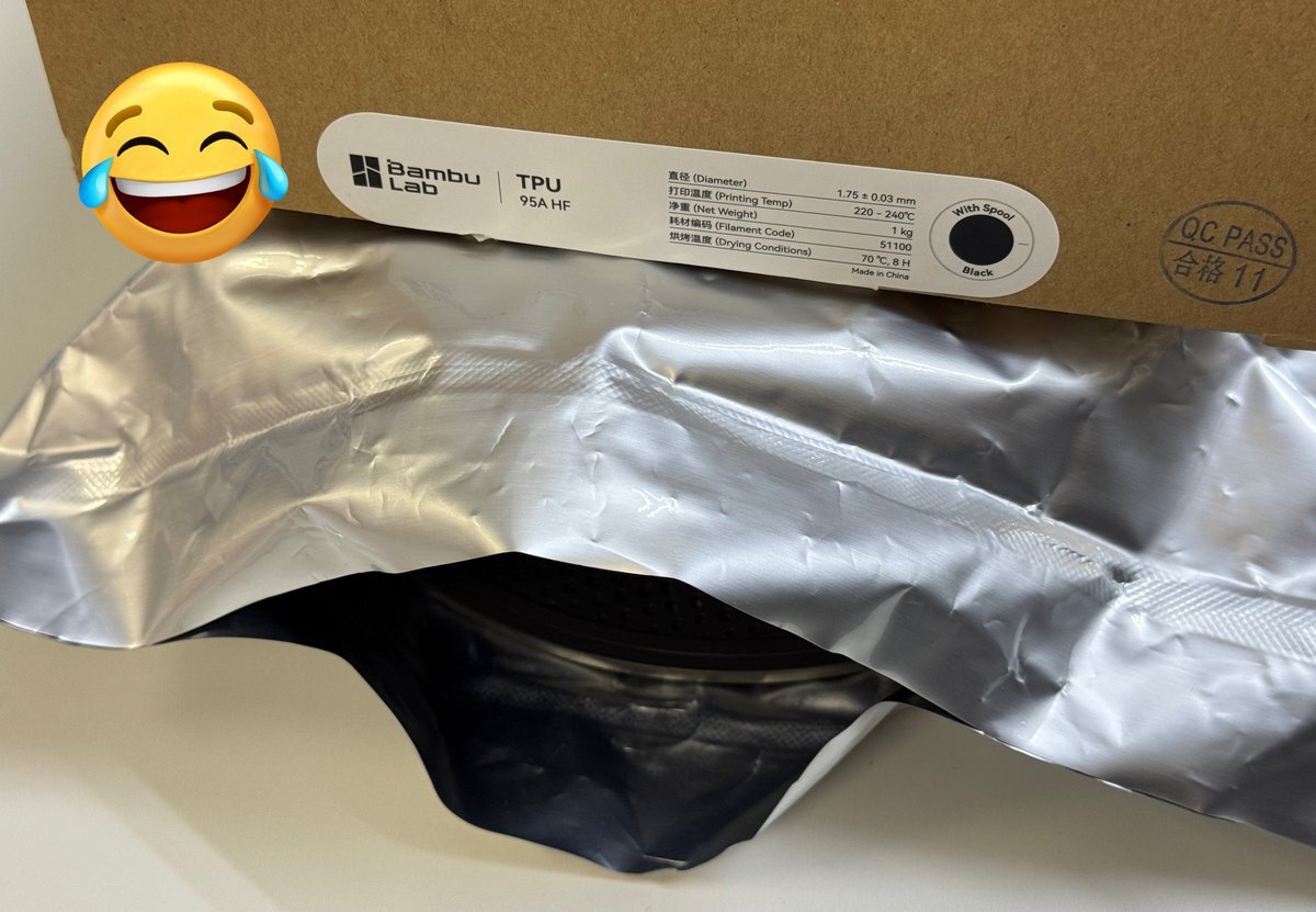 Bambulab TPUのアルミパック、チャック反対側の溶着が弱すぎる! #TPU #Bambulab pic.x.com/oPU1AgMXaJ