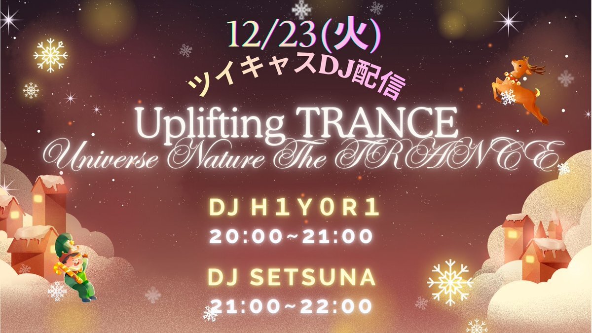 12/23(火)ツイキャスDJコラボイベント「Universe Nature The TRANCE」をやります♪お時間ある方は遊びに来てね!#DJ #TRANCE #ツイキャス SOUND BOLL BOX 20:00~21:00 DJ H1Y0R1 twitcasting.tv/c:h1y0r1_t Play the sound of TRANCE 21:00~22:00 DJ SETSUNA twitcasting.tv/setsunaskylight pic.x.com/P4wW9Sfrhp