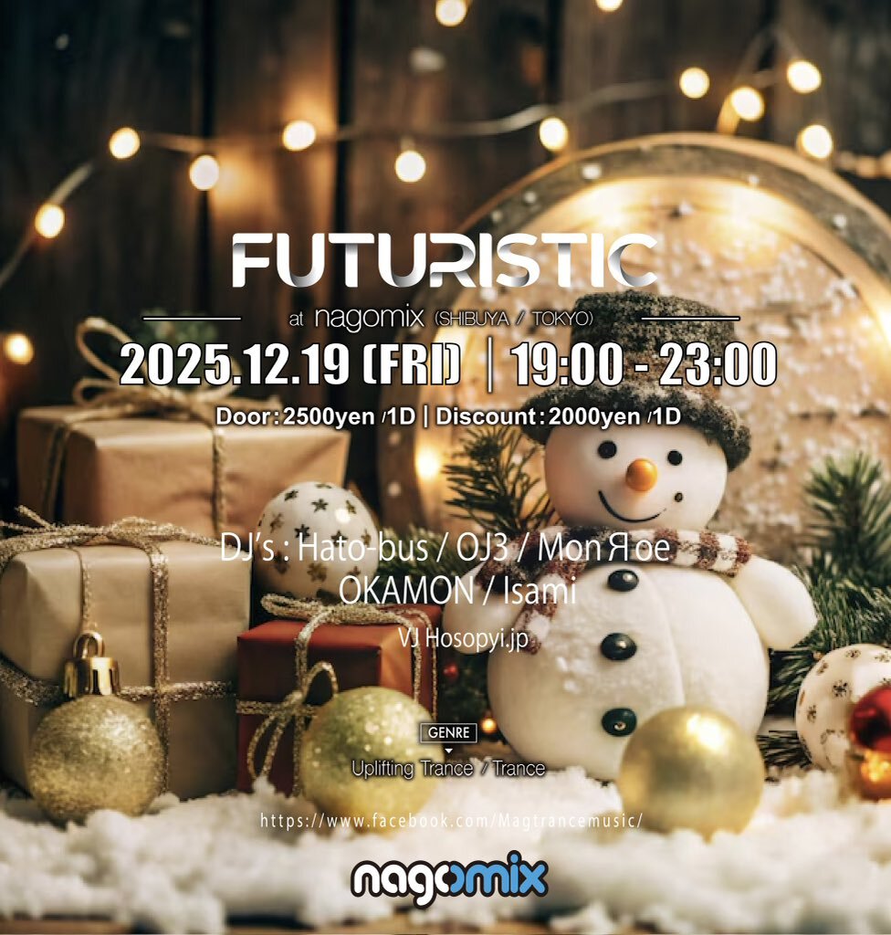 Tomorrow!! 本年の開催もあと1回となりました! 是非とも遊びに来て下さい😊 #Magnificent_Trance presents “ #FUTURISTIC ” ~Christmas Party~ Date:2025.12.19 (Fri) @ #nagomix Time:19:00 to 23:00 Door:¥2500/1d | DIS:¥2000/1d DJ HATO-BUS OJ3 Mon-roe Okamon Isami #trance #rt pic.x.com/7AewSNBn2c