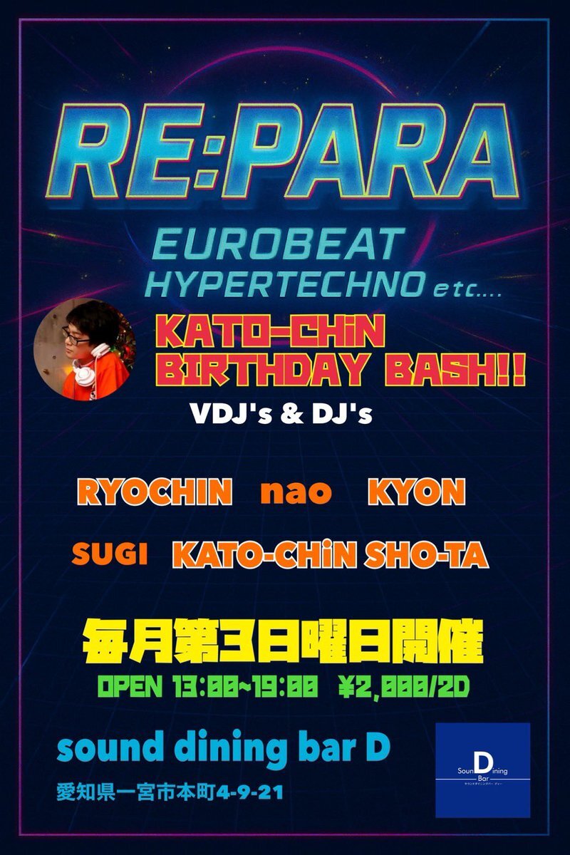 もうあと3日! 毎月恒例のRe:Paraです✨ 今月はDJカトちんのbirthday bash&Xmasスペシャル🎅 どうぞ皆様サンタの格好でお越しください🎅 ささやかながらケーキの用意かございます‼️ 年内ラストのRe:Para👍 楽しみましょう😊 #パラパラ #テクパラ #トラパラ #EUROBEAT #HYPERTECHNO #TRANCE pic.x.com/9FDfZOa684