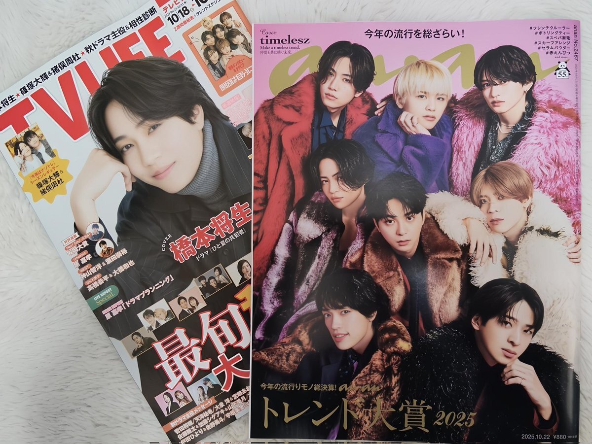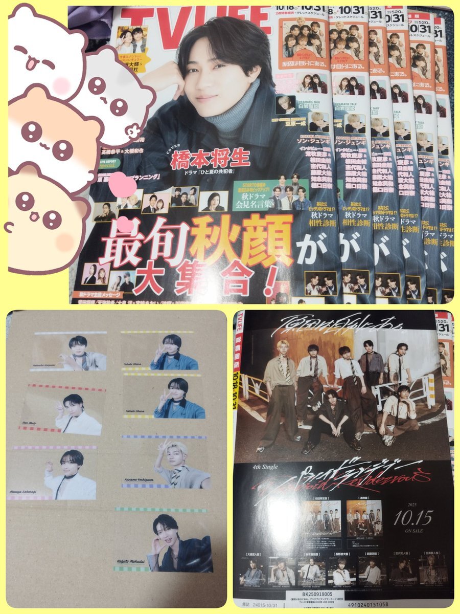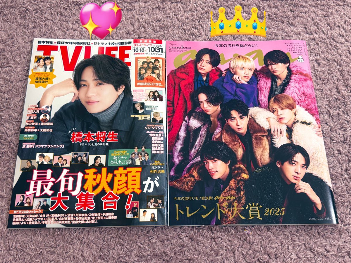 ꣑୧︵ 𓂂 祝 #TVLIFE ソロ表紙 🎊𓂂︵꣑୧ 橋本将生くん、2冊目の単独表紙おめでとう😻10/15の今日は発売 & anan AWARD大賞授賞だったので記念に🔟店舗で計15冊にしました💘 将生くんのモデルさんの夢も叶いますように🌈私も見たいです、ぜひよろしくお願いします📚ᙏ̤̫ ♡̴ #橋本将生 #テレビライフ pic.x.com/vs1S6KTOqD