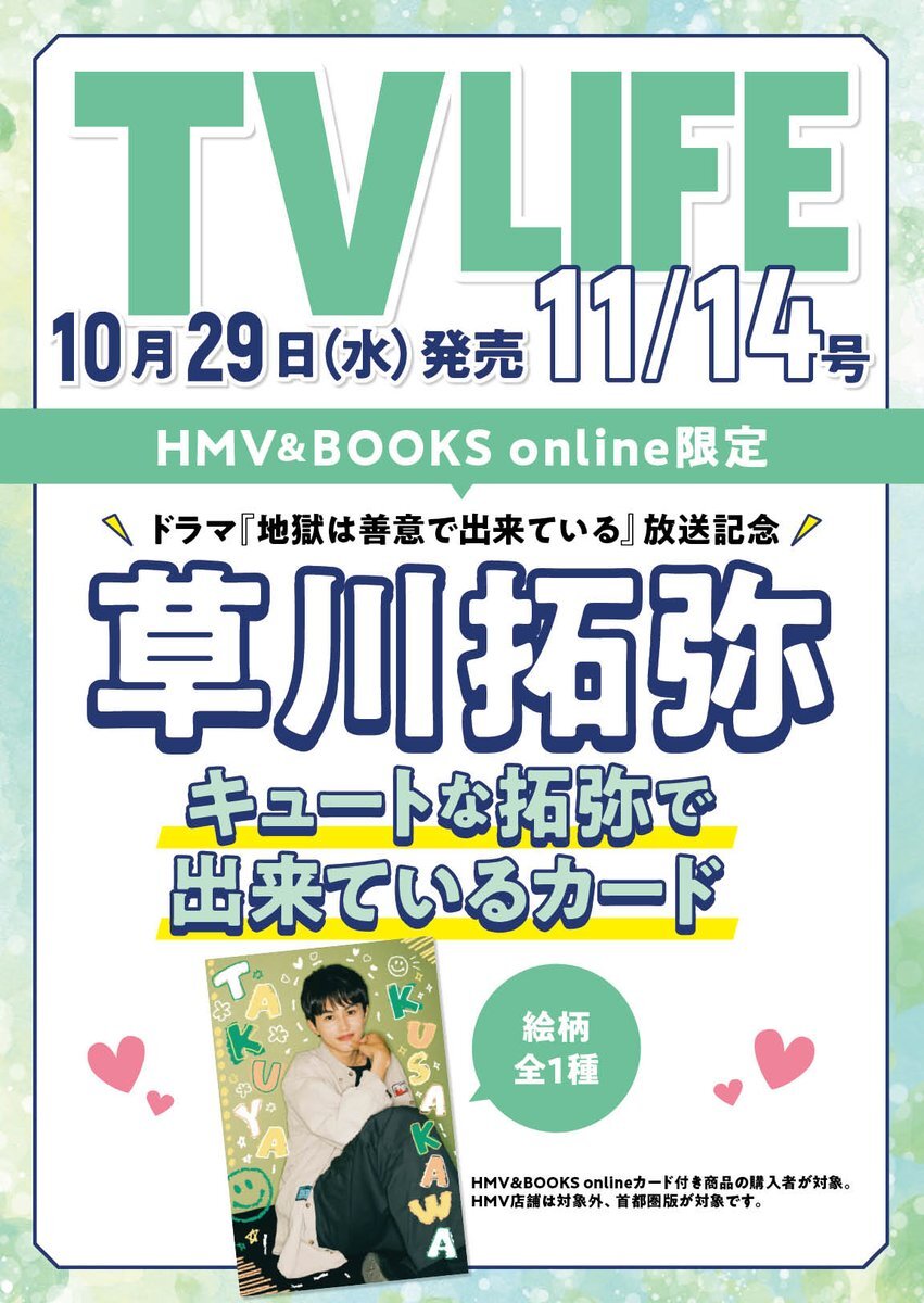 【表紙解禁】 10/15(水)『 TV LIFE 10/31号 』 🩷#橋本将生 表紙💐 💚#松島聡💚#原嘉孝 💛#猪俣周杜🤍#篠塚大輝 ▼Amazon amzn.asia/d/fh9iMeZ ▼HMV is.gd/MOyN4z ▼7net is.gd/iNalc7 ▼TR is.gd/MBddmB ▼楽天 is.gd/OUPrh8 #TVLIFE #timelesz