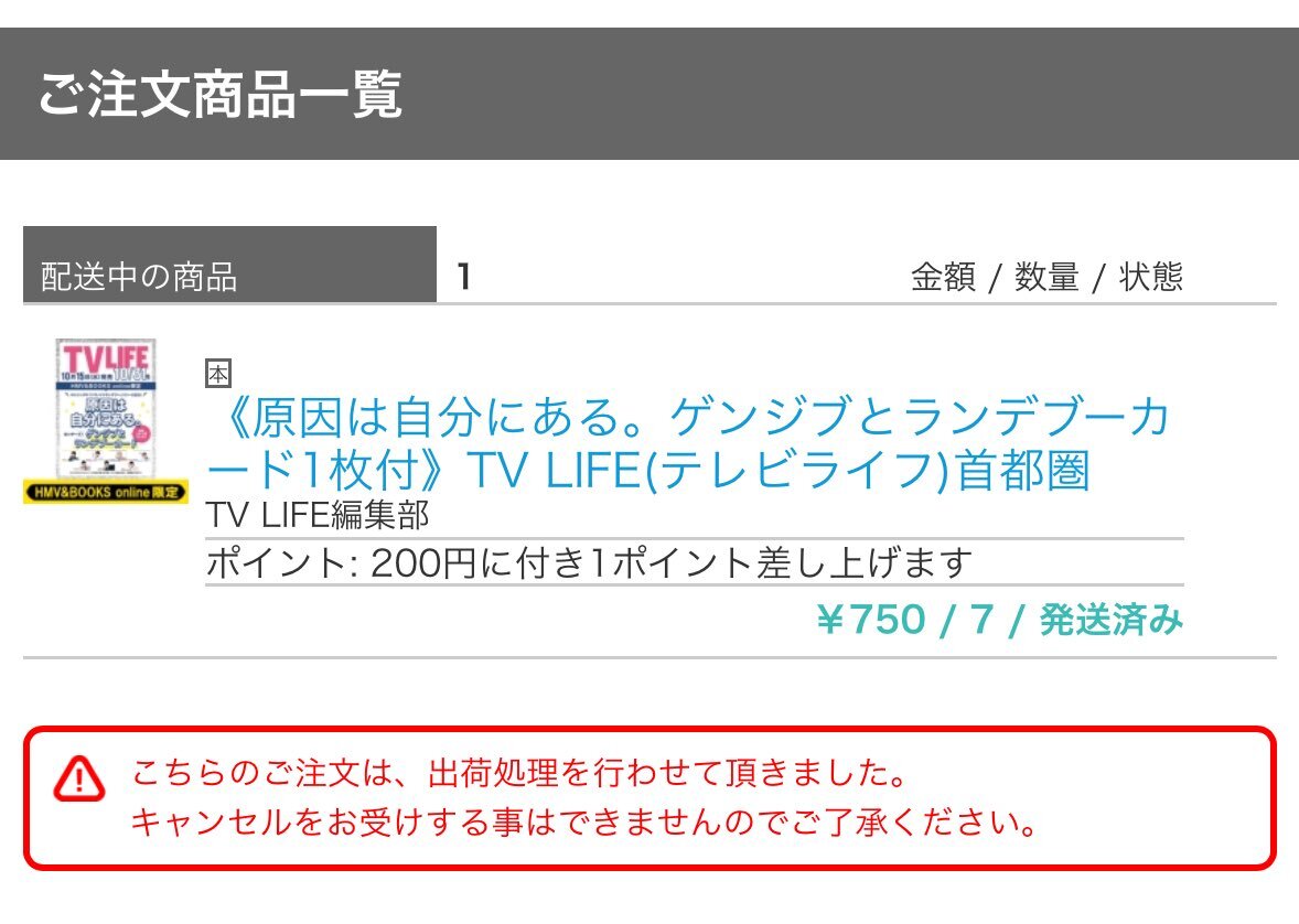 <原因は自分にある。ゲンジブとランデブーカ CHIV&BOOKS online限定 ード1枚付> TV LIFE(テレビライフ)首都巻買ったはずなんだけど、雑誌しか入ってない…。 仕事前に届いてるんるんであけたけど、カード入ってなくて普通に鬱。 #TVLIFE #原因は自分にある。 pic.x.com/vqgWslmsCW