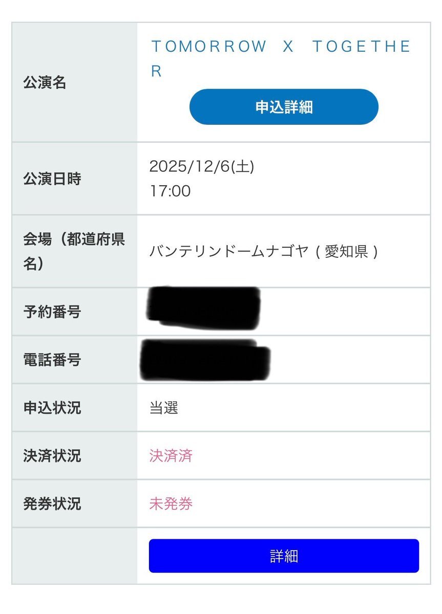 TXT <ACT : TOMORROW> IN JAPAN チケット トゥバ 愛知 12.6 譲:12/6 バンテリンドーム名古屋FC1次 2連 求:25000円 当方もお友達も行けなくなってしまった為、お譲りいたします。発券番号を教えますのでご自身で発券の程お願いします。FC1次当選のお座席です。 #TXT #TOMORROW_X_TOGEHTER pic.x.com/reGYFC3Y8X