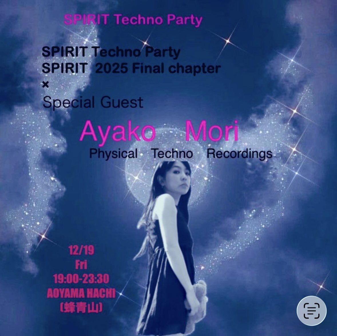 12月19日(金)Spirit Techno Party @aoyama_hachi Gest DJ #ayakomori @hellokuronekoap 私は19:50-20:40, 3rd Floor 🎧🪩🖤🙌 #techno #nightclub #shibuya #technodj #aoyamahachi #テクノ #Dj #akikoiwahara pic.x.com/3U86dMZILo