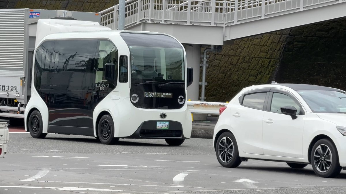 トヨタのWoven City内、および周辺公道を走行するe-Paletteです。近未来的な雰囲気。 #Toyota #WovenCity #ePalette #自動運転バス pic.x.com/sj0wvk2Hsb