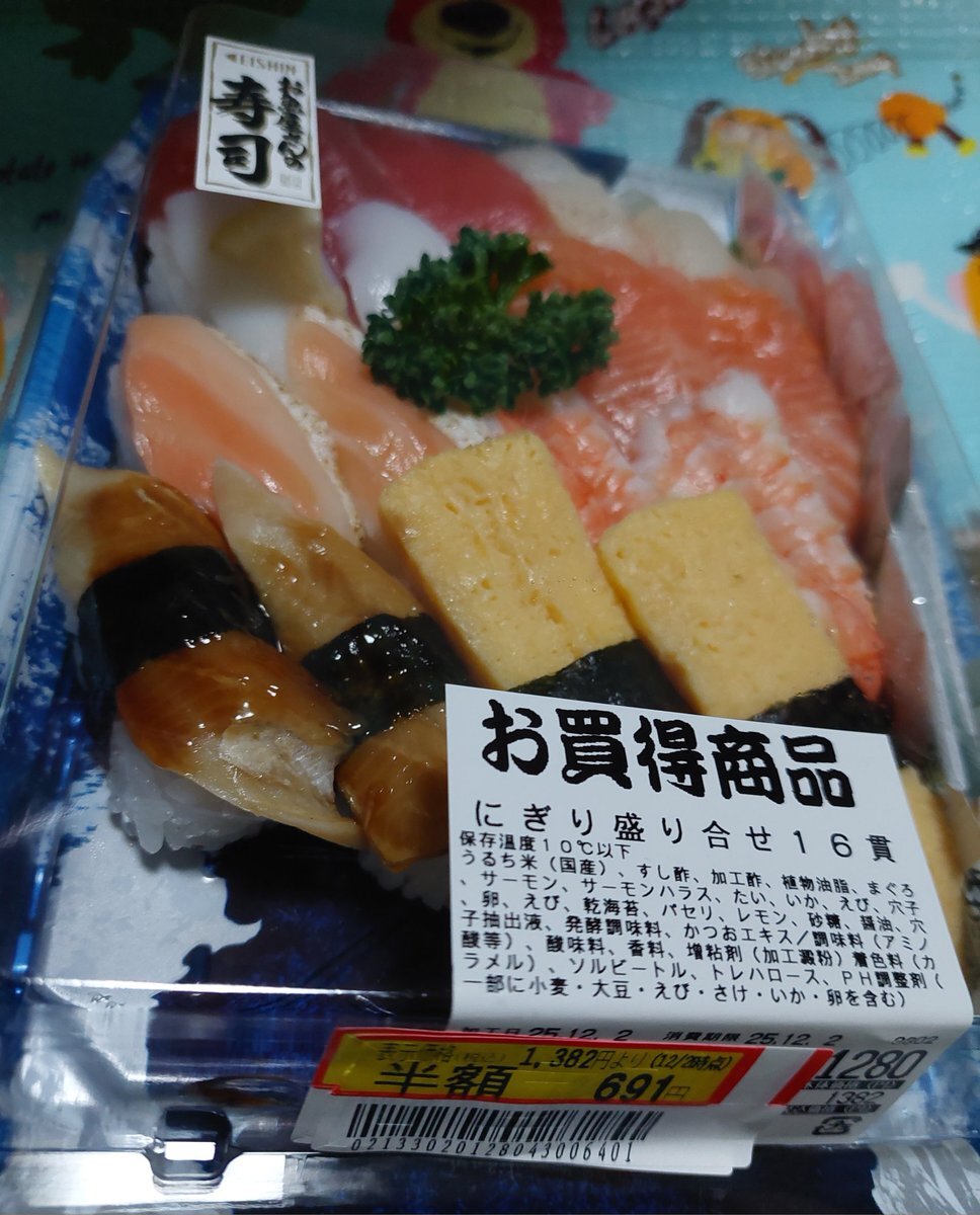晩御飯は半額のお寿司です🍣 今日もお疲れ様でした🌃✨ #おうちご飯 #半額 #お寿司 #TRIAL pic.x.com/jgKlr76maE