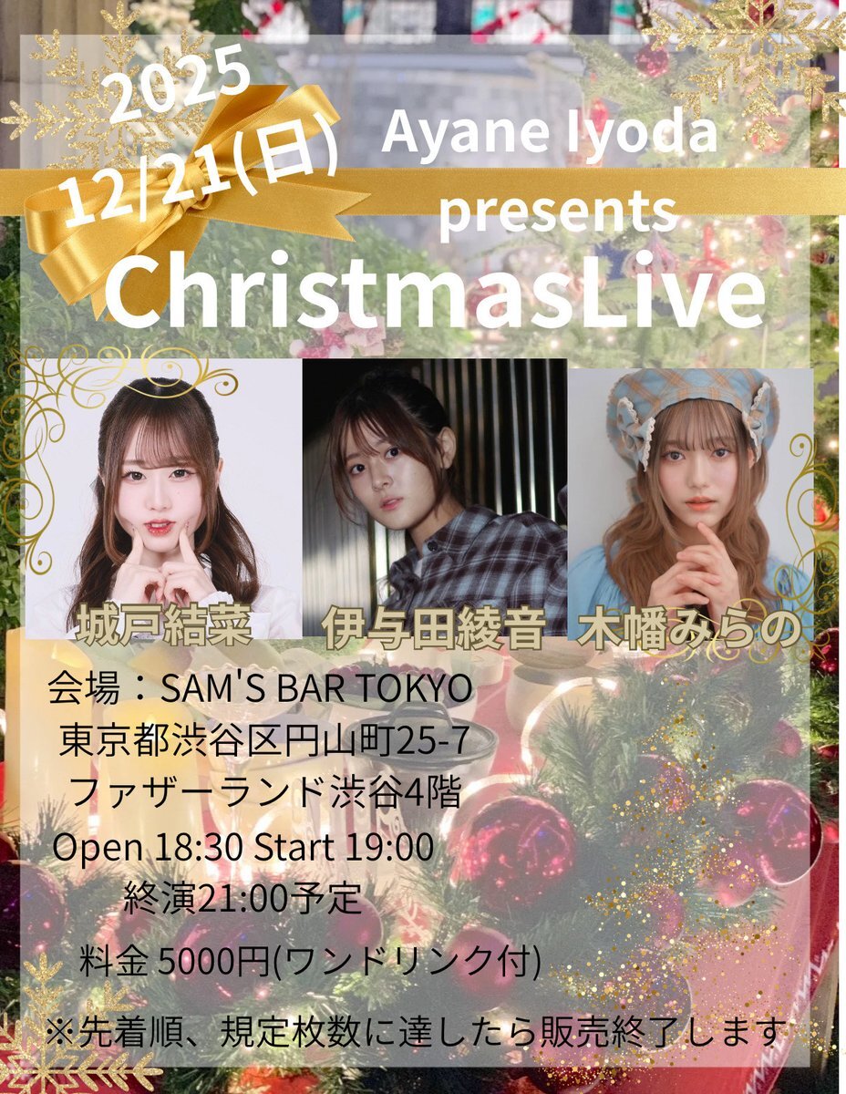 ~Ayane Iyoda presents~ ✨#ChristmasLive✨ 2025.12.21(日) SAM'S BAR TOKYO 開場 18:30 開演 19:00 チケット 5000円(1D付) ➡t.livepocket.jp/e/qw26-?fbclid… #伊与田綾音 @iyoda_aayaneonbase.bitfan.id 初オリジナル曲「#Troublemaker」 ➡inkco.re/eVZCYrfa pic.x.com/czi7ibFKQ6