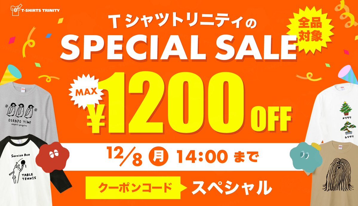 \TシャツトリニティのSPECIAL SALE開催🎉/ 全品対象&最大1200円引き‼️🤩 ロンT、スウェット、アウターなど 寒い冬に大活躍のアイテムが超おトク💥 何を買ってもお買い得✨ この機会をぜひお見逃しなく👀🌟 ⏰ 開催期間 2025年12月4日(木)16:15 〜 12月8日(月)14:00 🎫400円引きクーポン配信