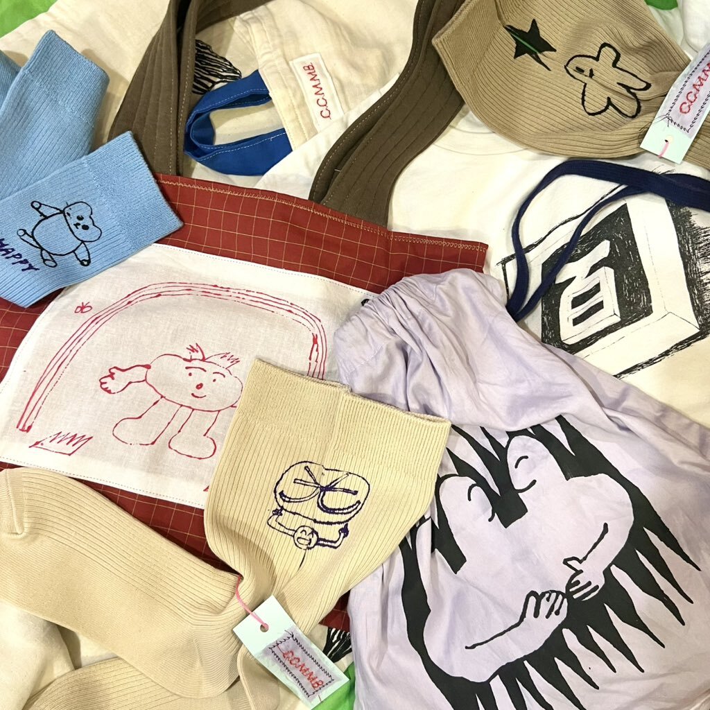 新作バッグと靴下多数のほか 作家のused & 驚きのプライスダウン商品も引き続きお取扱いしています 全てチャチャマンボのアイテムです🍑 詳細は追って #チャチャマンボ #momokoimada #bag #socks #巾着 #tshirt #pillowcase #silkscreenprinting #drawing #DOMA #domakyoto #kyoto #雑貨屋 pic.x.com/E6COLRMeyz