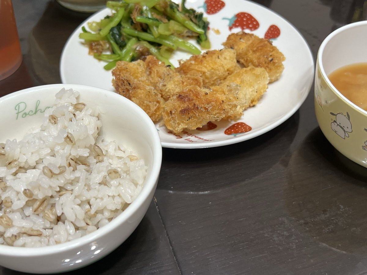 今夜は大盛りチキンカツ&サラダー! 今週もお疲れさまでした🍺 #Twitter家庭料理部 #おうちごはん pic.x.com/JEGPufAK1n