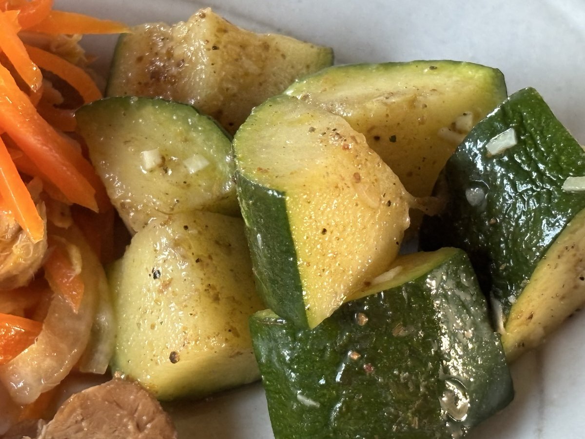 ズッキーニのにんにくスパイス炒め。このスパイス、だいぶ前にインド人からもらった「チキンマサラ」。コツコツ使い続けてまもなくなくなりそう。カレーの辛味増しや炒め物、ひき肉の風味付けに使ってます。 #料理好きな人と繋がりたい #おうちごはん #Twitter家庭料理部 #rootcueごはん pic.x.com/l6WQ9gsep5