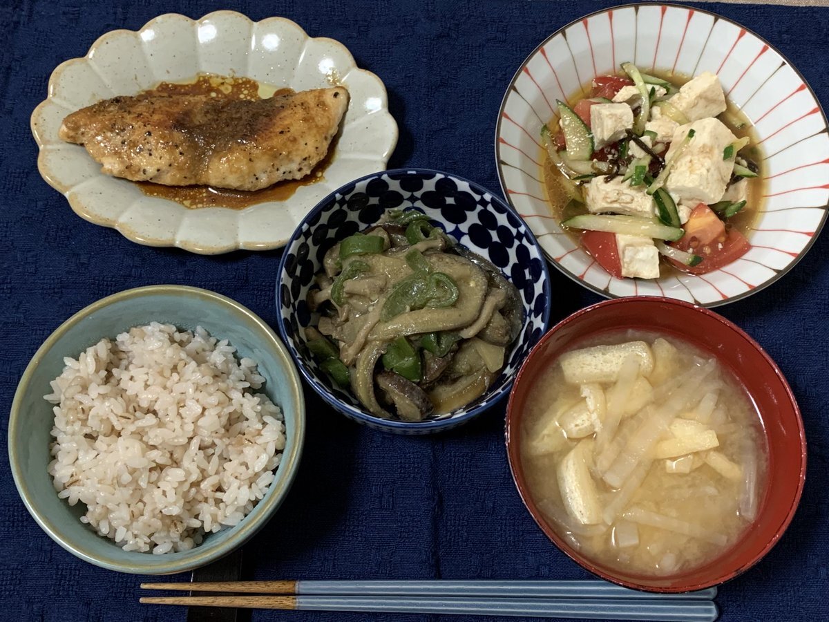 ◯カジキのレモンバター醤油ソテー ◯トマト胡瓜木綿豆腐の塩昆布サラダ ◯茄子味噌 ◯大根と油揚げのお味噌汁 #Twitter家庭料理部 #おうちごはん #自炊 #和食 pic.x.com/hPtOyxKpaE