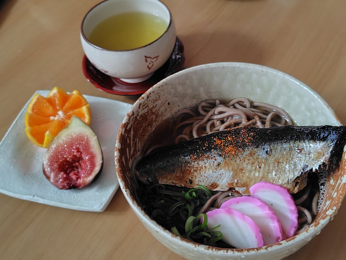 / |・ᴗ・)ノ゙今日のランチ💕 \ ざる蕎麦。 戸隠風に盛り付けてみたです。海老かき揚げ(市販品)、大和芋とろろ&温玉、フルーツ🍌です。 生蕎麦を茹でる時に使った梅干しも一緒にいただきます。 (´౿`)♡ #お昼ごはん #おうちごはん #Twitter家庭料理部 #まことKitchen pic.x.com/IzlZER3DZO