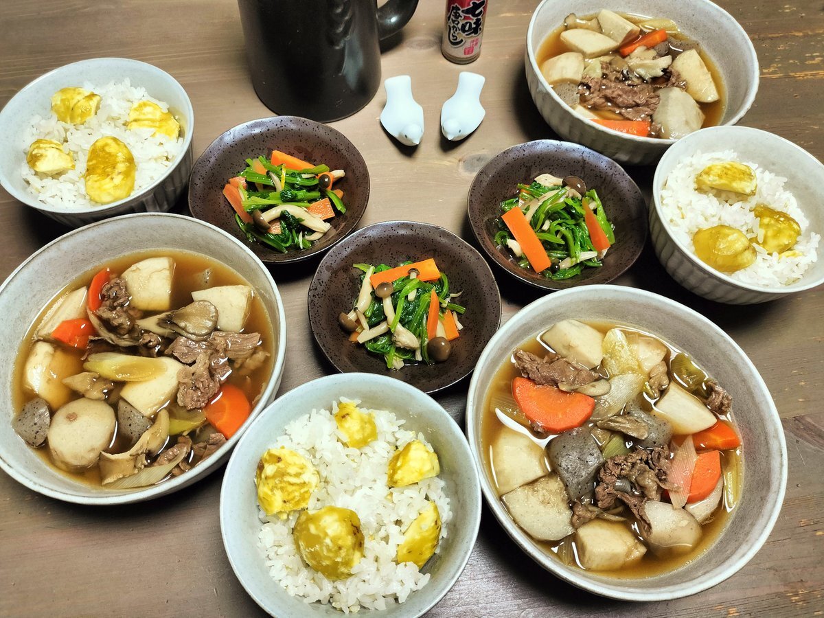 夕飯は 具だくさん豚汁 です♪🐷✨ 寒くなったら作りたくてウズウズする料理の上位ランカーですね😁 具材も沢山入れればご飯のおかずにもなっちゃう✌ 昨日の中華丼の残りも付けて、今日もうずら卵をいただいちゃいます🤭 #おうちごはん #料理好きな人と繋がりたい #自炊記録 #Twitter家庭料理部 pic.x.com/k9aIDFBwqj