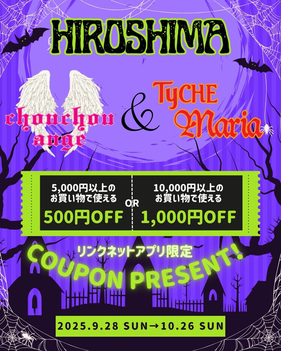 🌟カラフルコレクション&ティケシュシュハロウィン🎃記念企画 #chouchouange広島 & #TyCHEMaria 広島限定🉐アプリクーポン👼9/28〜10/26🌹 ☆リンクネットアプリをダウンロード ☆chouchouange広島お気に入り登録 是非ご利用ください💖 ⬇️ダウンロードがまだの方は下記より link-net.jp/app/ pic.x.com/OFIBxLyyGV