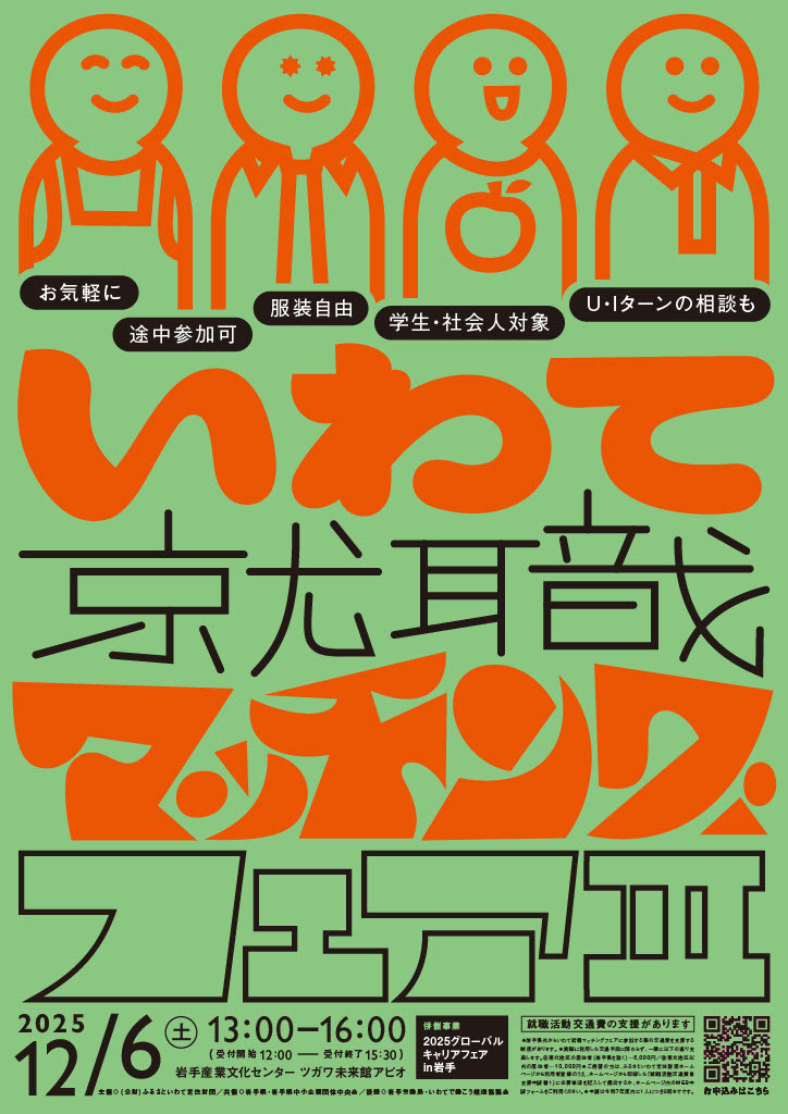 【広告】 165社と直接話せる「いわて就職マッチングフェアⅢ」開催! 12月6日(土)、アピオにて🏢 学生、社会人、U・Iターン、留学生歓迎📣 無料バスや交通費支援もあります! 事前申込受付中。詳細・申込はこちら↓ furusato-i.or.jp/event/event-99… #いわて就職 #岩手で働こう #就職イベント #UIターン pic.x.com/lOhiz27gKc