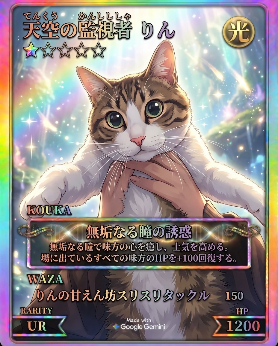Gemini で新作ゲーム「ペットカードジェネレーター」 を作ったからやってみて! スマホの写真ライブラリにあるペットの写真を読み込ませるとカードになるよ。 script.google.com/macros/s/AKfyc…