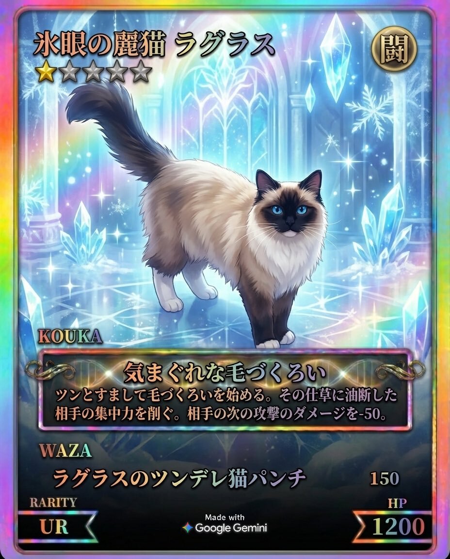 可愛いいいいいい🥰ウチの子最強💗 #猫のいる暮らし #ラグドール #猫 #カード #UR #ペットカードジェネレーター pic.x.com/c8ZErAasaJ x.com/nodacry/status…