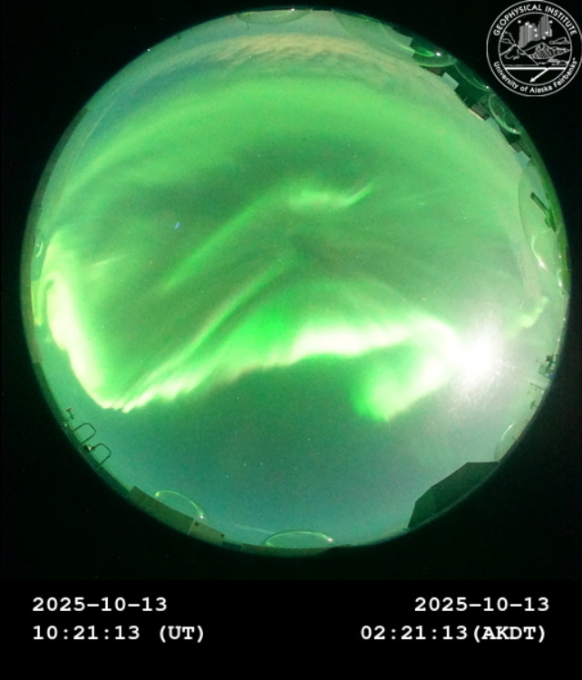 今日、10月13日 #USA 北西部 #Alaska 州 #PokerFlat(北緯65度8分)の全天ライブカメラで #オーロラ 確認。これは明るい!#緑色オーロラ が美しいねぇ! 新SNS #bluesky(bsky.app/profile/shibac…)もよろしく! URL: allsky.gi.alaska.edu #northernlights #aurora #Auroraborealis #dancing_curtain pic.x.com/JRqQ68DjuN