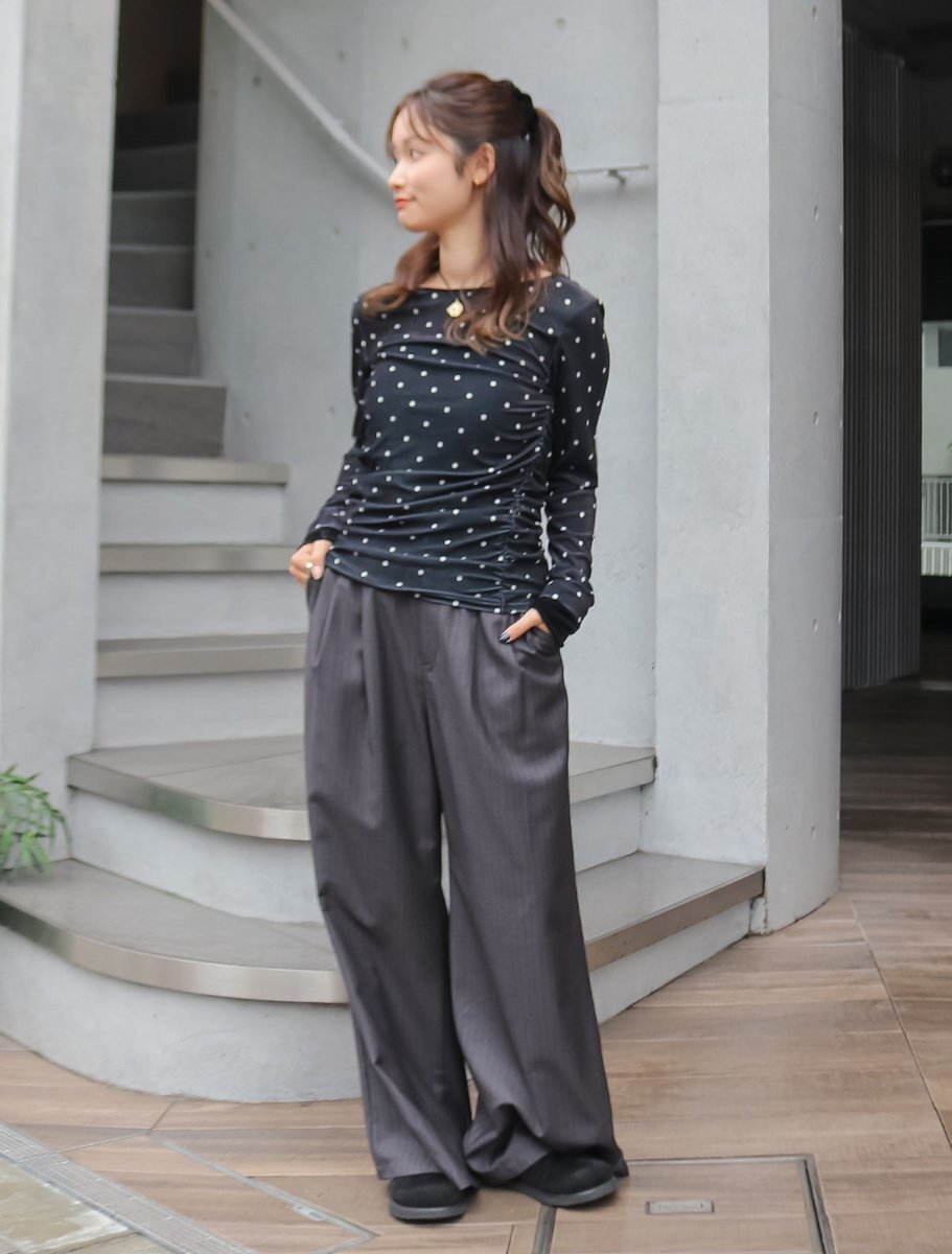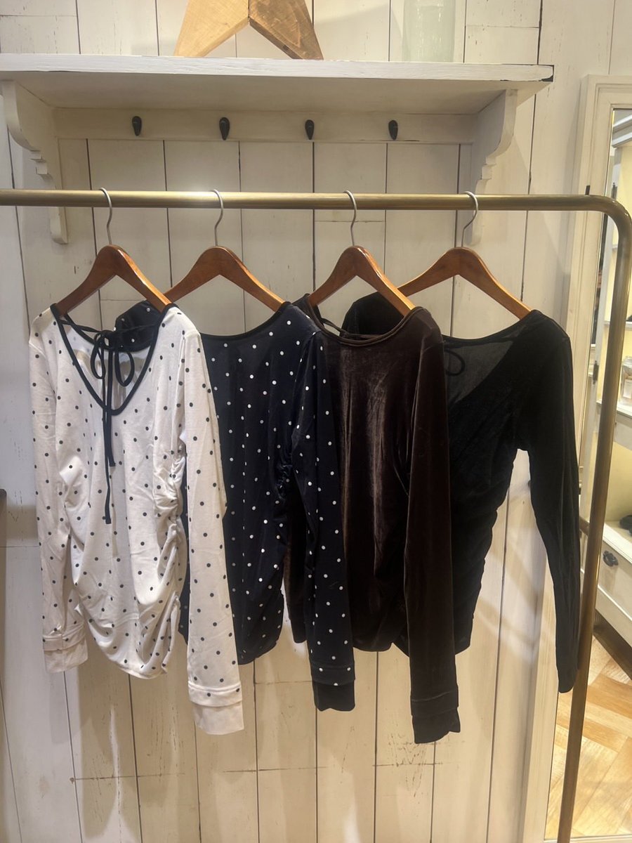 11/13 New🍁 #バックオープンドットシアーベロアロングスリーブTee O.WHT/BLK/BRN/MIX ¥8,800 程よくフィットするサイズ感と少し長めの袖が女性らしさを演出👠 少し透け感のあるシアーベロアを使用🫧 カジュアルにデニム合わせがおすすめ👖 #Ungrid #Ungrid金沢フォーラス店 pic.x.com/k6CQto3T4v
