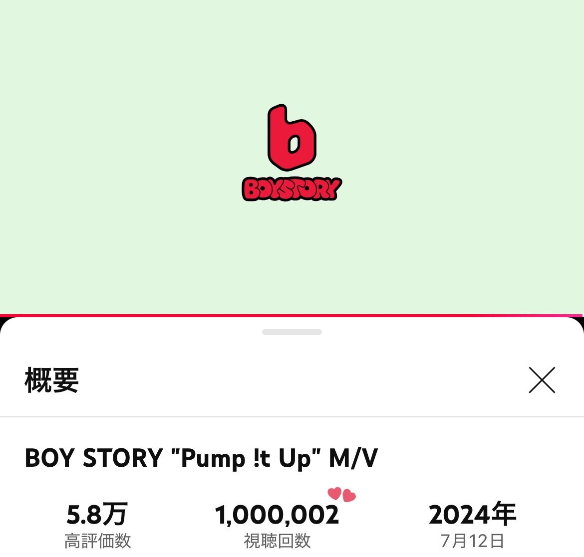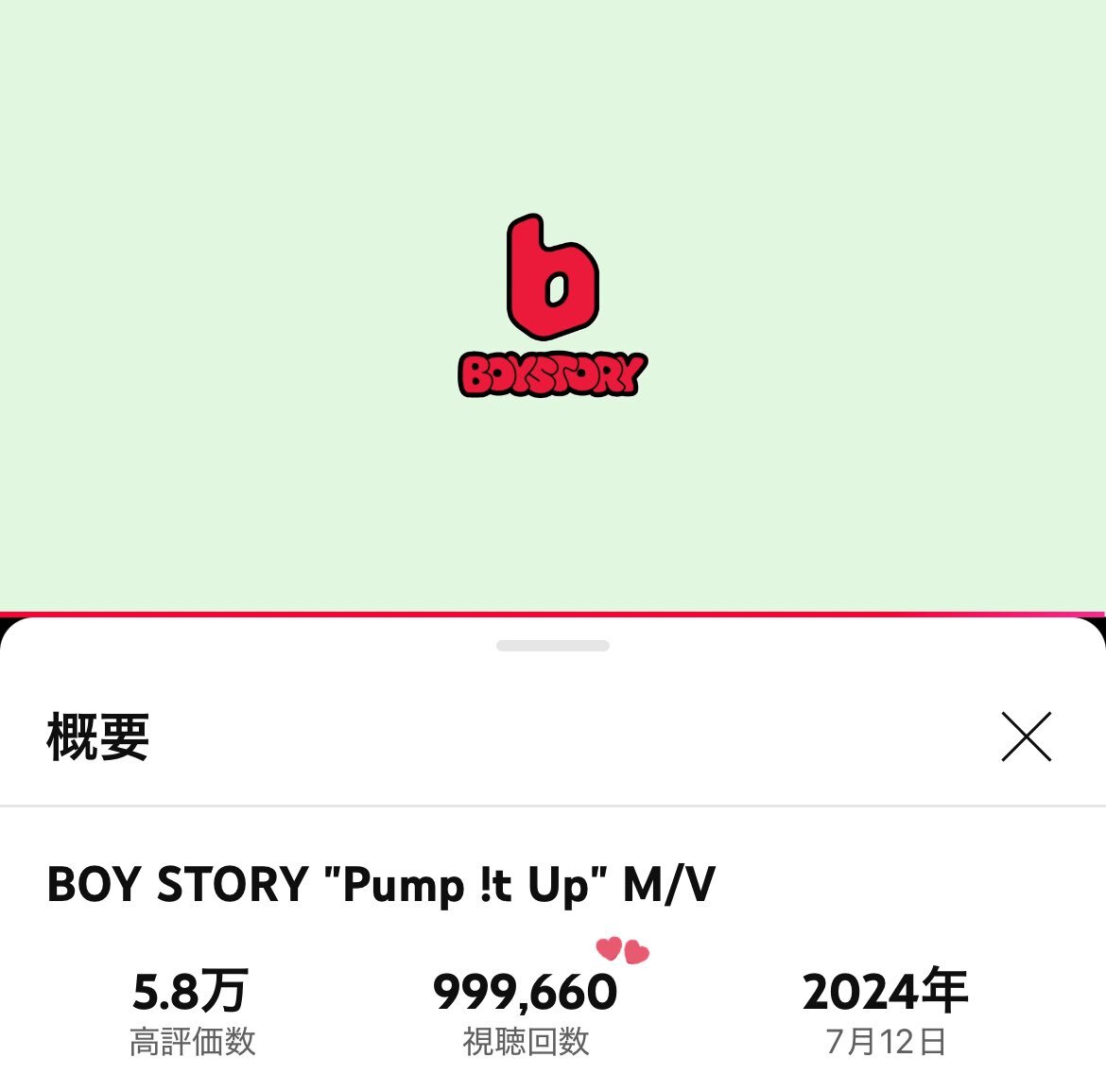 もうすぐ100万再生✨ やっとここまできた!!あともうちょい!! #BOYSTORY #UP #Pump_It_Up #BOYSTORY_Pump_It_Up pic.x.com/VNduFiRtHc x.com/boystory_world…