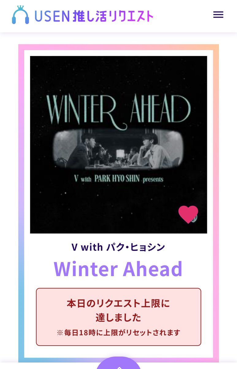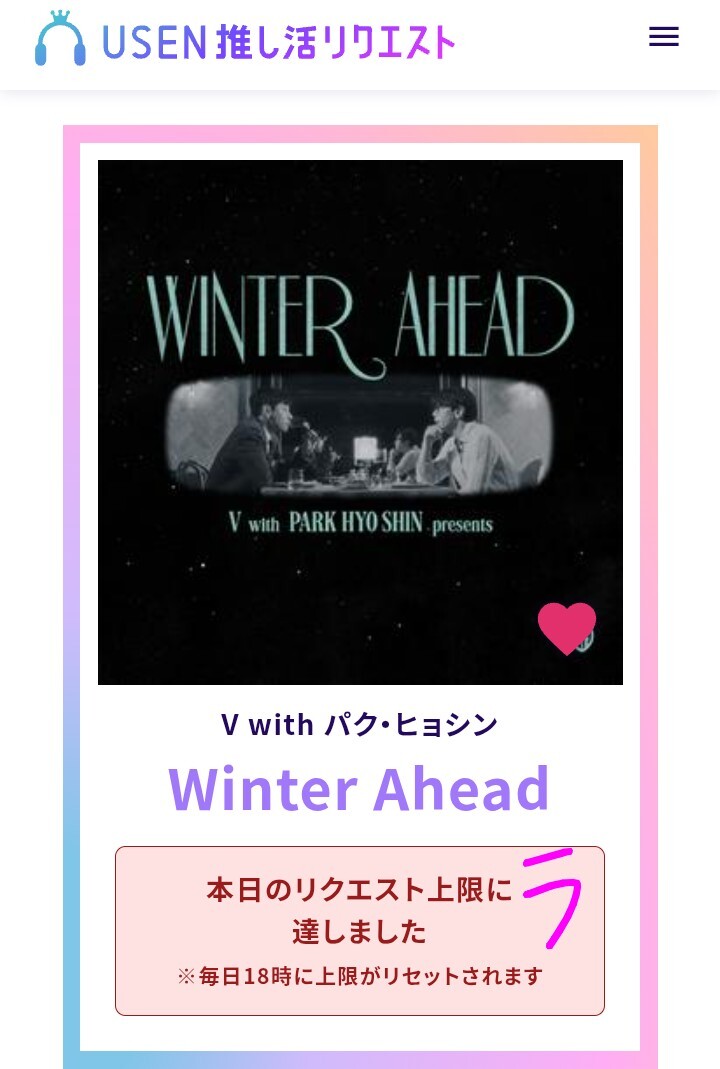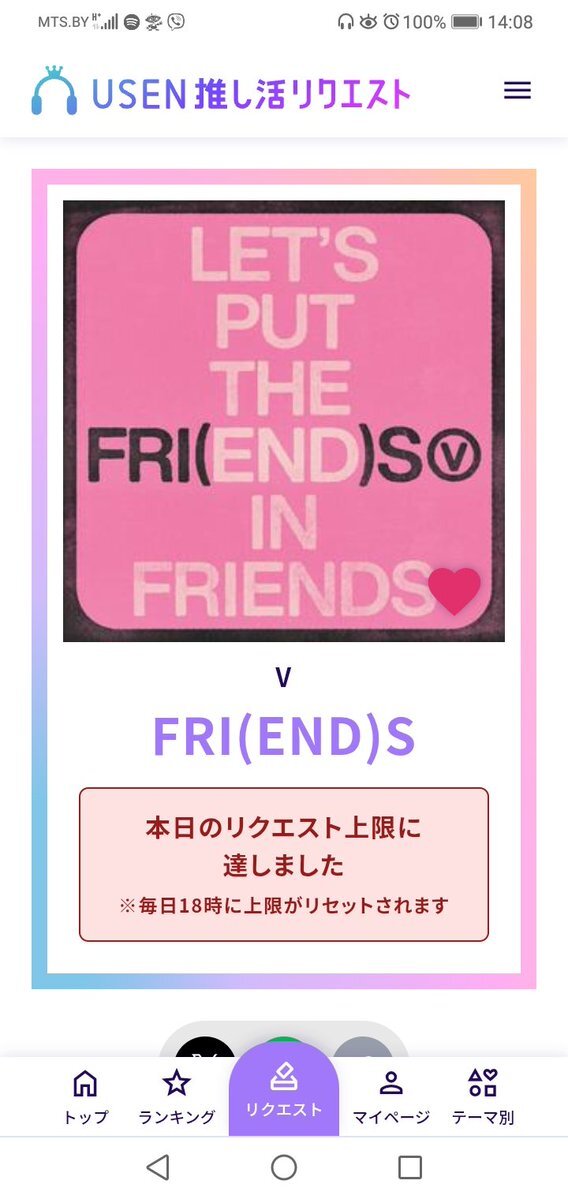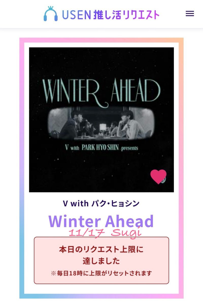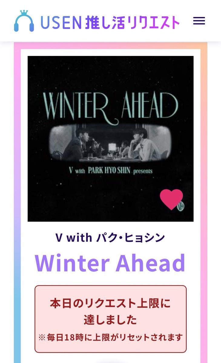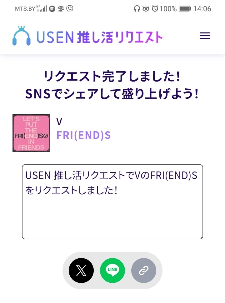 USEN 推し活リクエストでVのFRI(END)Sをリクエストしました🩷🐻! usen.oshireq.com/song/6374660 #USEN推し活リクエスト #推しリク #V